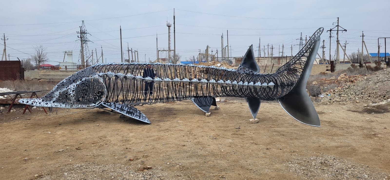 Житель поселка Индербор Атырауской области, мастер по металлу Азамат Кенжегалиев,, изготовил большого осетра — уникальный арт-объект, сообщает корреспондент AtyrauTODAY.